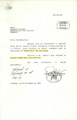 En la misiva el Alcalde de La Florida solicita un aporte económico para la ampliación del Consultorio Los Quillayes