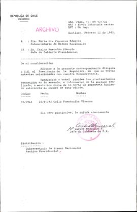 Item 92-722 - [Oficio Ord. N° 722 de Jefe de Gabinete Presidencia, remite fotocopia de carta]