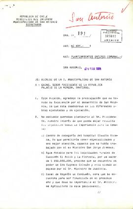 Ord. Nº191 de la secretaría de la Municipalidad de San Antonio, de su Alcalde, sr. Elidio Soto Soto, dirigida al Excmo. Señor Presidente de la República
