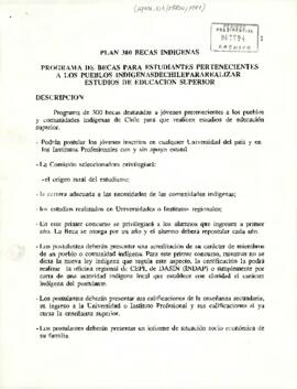 Plan 300 becas indígenas: programa de becas para estudiantes pertenecientes a los pueblos indígenas de chile para realizar estudios de educación superior.