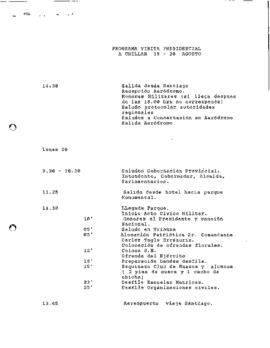 Programa de la visita presidencial a Chillán los días 19 y 20 de agosto de 1990