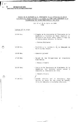 Programa oficial de la visita del Presidente de Chile, sr. Patricio Aylwin Azócar, a Lima (Perú) entre el 27 y el 29 de julio de 1990, con motivo de la transmisión del mando presidencial peruano