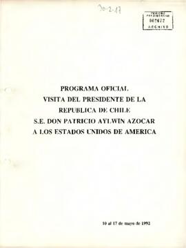 Programa oficial de la visita del Presidente de la República de Chile, S. E. don Patricio Aylwin Azócar, a los Estados Unidos de América