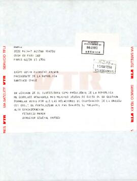 Telegrama del sr. Federico Mayor, Director General de la UNESCO dirigido al Excmo. Señor Patricio Aylwin, Presidente de la República