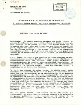 Transcripción de la entrevista al Presidente Patricio Aylwin Azócar realizada por el diario Excélsior de México el 4 de julio de 1991 en Santiago