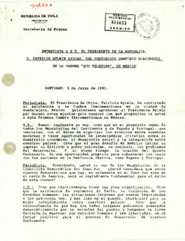 Transcripción de la entrevista del periodista Demetrio Olaciregui (ECO Televisa, México) al Presidente Patricio Aylwin Azócar, realizada en Santiago el 3 de julio de 1991, antes de su viaje a la Primera Cumbre Iberoamericana en Guadalajara.