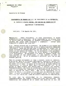 Transcripción de la Conferencia de Prensa del Presidente de Chile, Patricio Aylwin Azócar, realizada en Santiago el 7 de agosto de 1991, con medios nacionales y extranjeros